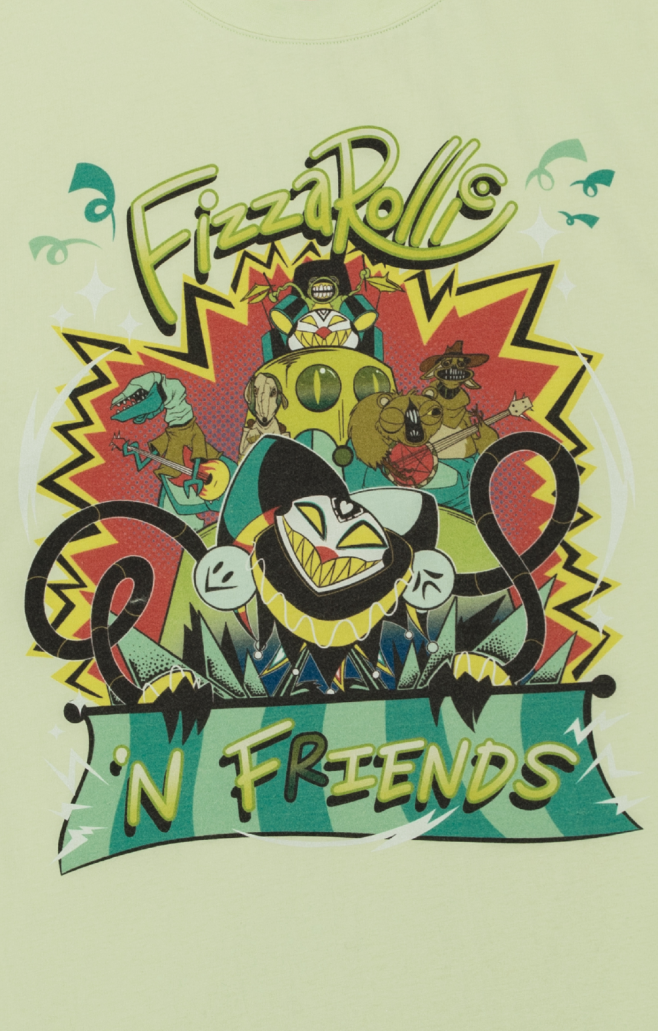 Dress yourself and your ugly children in this fun for the whole family Fizz n Friends t-shirt! Featuring the Robotic Fizzarolli lead band that makes kids cry with what we can only assume are tears of non-traumatized joy, shipped straight from Ozzies factory to the Loo Loo Land park and now on a fucking lime green shirt! This graphic tee tells the world "Hey, look at me, I saw a show at LooLoo Land and bought this in the gift shop. I'VE got theme park gift shop money. Pretty cool, yeah?".