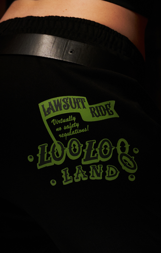 Whether waiting in line for The Lawsuit or running from flaming robotic carnage, these joggers are built for both action and style! Featuring a killer Loo Loo Land graphic that screams completely unique and not at all a rip-off of another more popular theme park (it's NOT, shut your mouth!!), these joggers are more than just comfy—they’re a copywrite-proof statement! Every boy, every girl, every woman, every man will LOVE this fit!