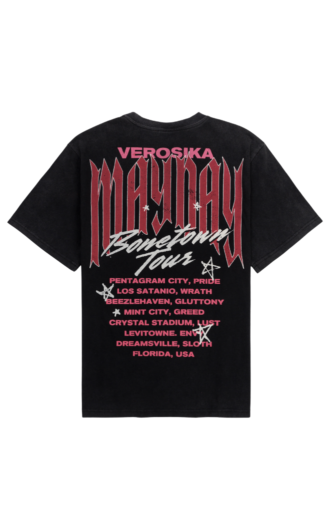 Wear your Verosika Mayday fandom loud and proud with our Oversized Verositour T-shirt! The loose fit means unrestricted dancing all night long in total comfort. Step up your attitude and get yours now to see what it feels like to be a real pop star.