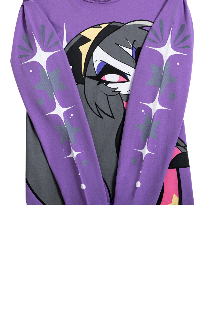 For the introspective, dark-souled fans who resonate with Octavia’s style, the Octavia Long Sleeve Tee is the perfect blend of moody and celestial. Inspired by the goth-leaning, star-loving daughter of Stolas, this tee captures Octavia’s complex personality with stunning star graphics and a cosmic edge. Embrace her quiet, rebellious spirit and take a piece of her world with you.