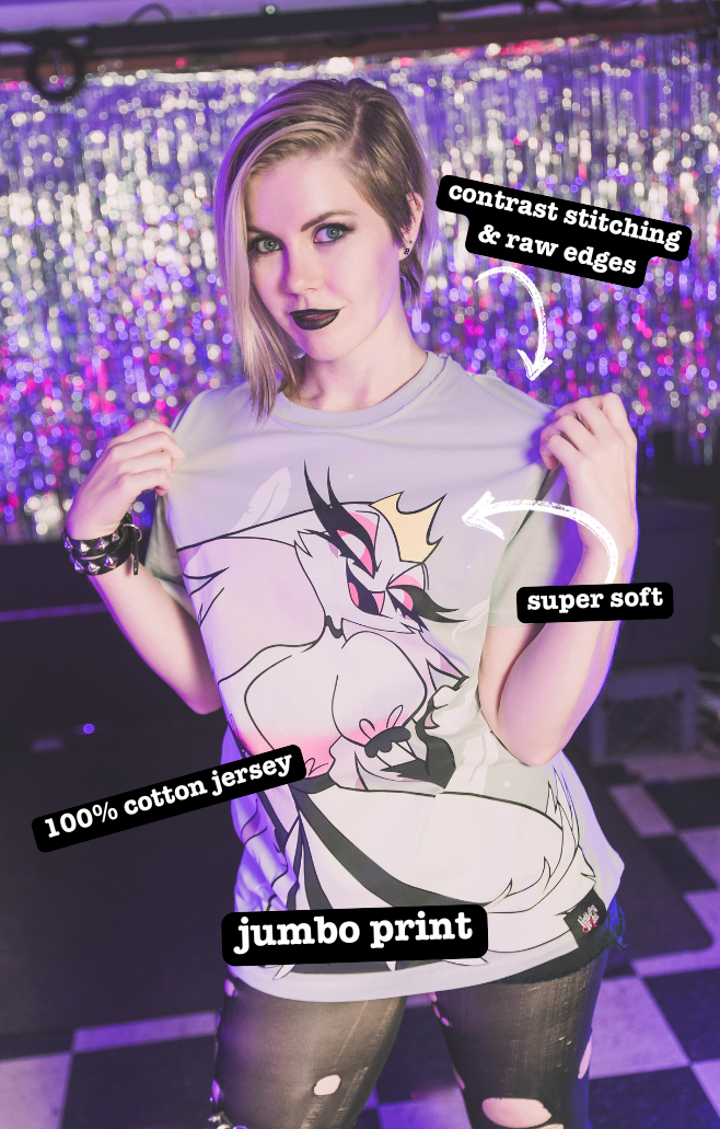 Embody the regal, unapologetic power of Hell’s fiercest noble with the Stella Short Sleeve Tee. Inspired by Stella’s fiery personality and fierce elegance, this tee combines class with an edge, showcasing her sharp, no-nonsense style. Perfect for fans who admire her commanding presence and relentless ambition, this tee is a bold tribute to one of Helluva Boss’s most formidable figures.